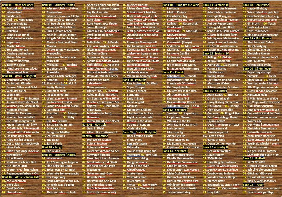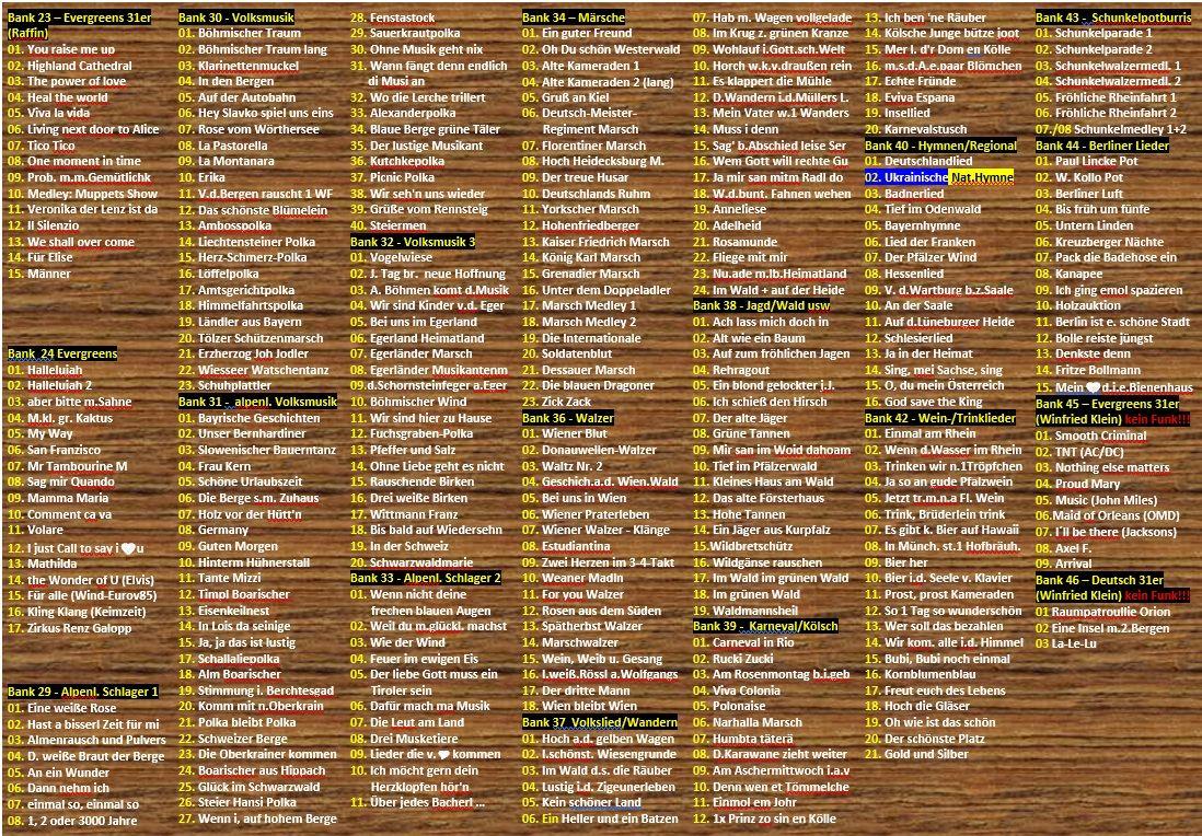 (am Ende jedes Musiktitels ist die Spieldauer in Sekunden in hellblauer Schrift angegeben)